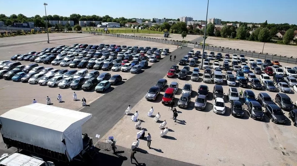 Верующие французского городка Шалон-ан-Шампань попробовали новый для себя формат проведения церковной службы. В стране запрещены собрания более 10 человек. Около 500 верующих приехали на парковку у церкви на 200 машинах.