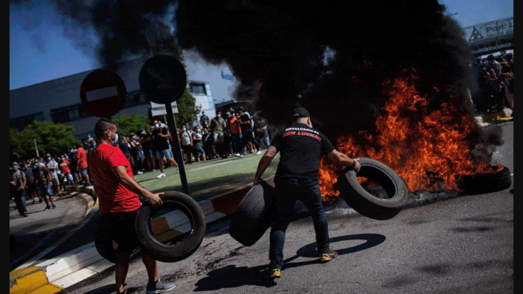 Узнав о таком решении, рабочие в Барселоне вышли на улицы. Они жгут покрышки у проходной и отказываются работать. Сотрудники завода считают, что закрытие производства обречет их на голодную смерть. В связи с пандемией коронавируса многие предприятия сокращают персонал, и заново трудоустроиться практически невозможно.