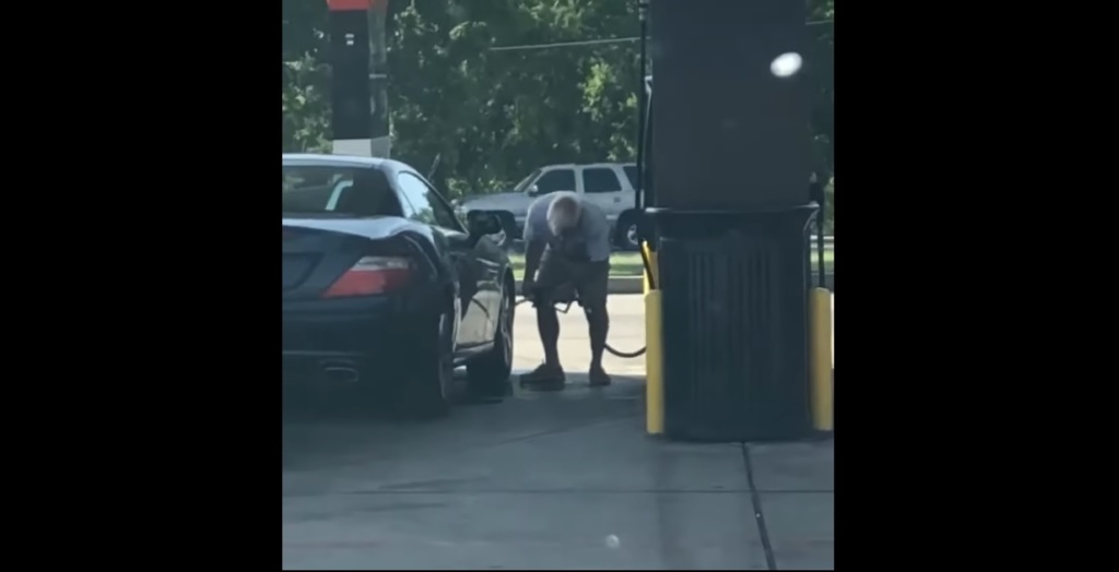 Водитель помыл колеса бензином на АЗС (очень странное видео)