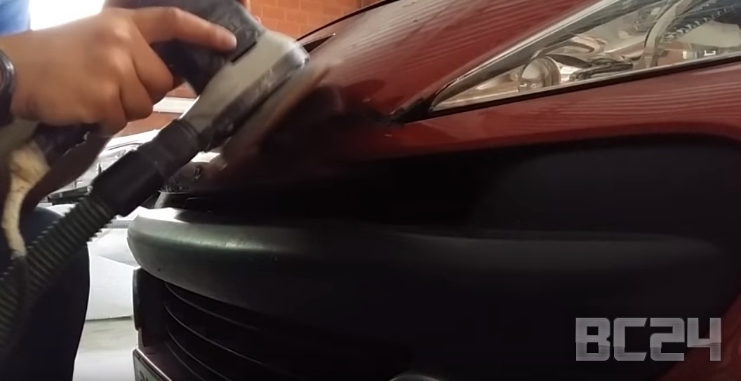 Ровняем бампер, чтобы расплавленный пластик от нашей пайки был идеально гладкий и ровный.