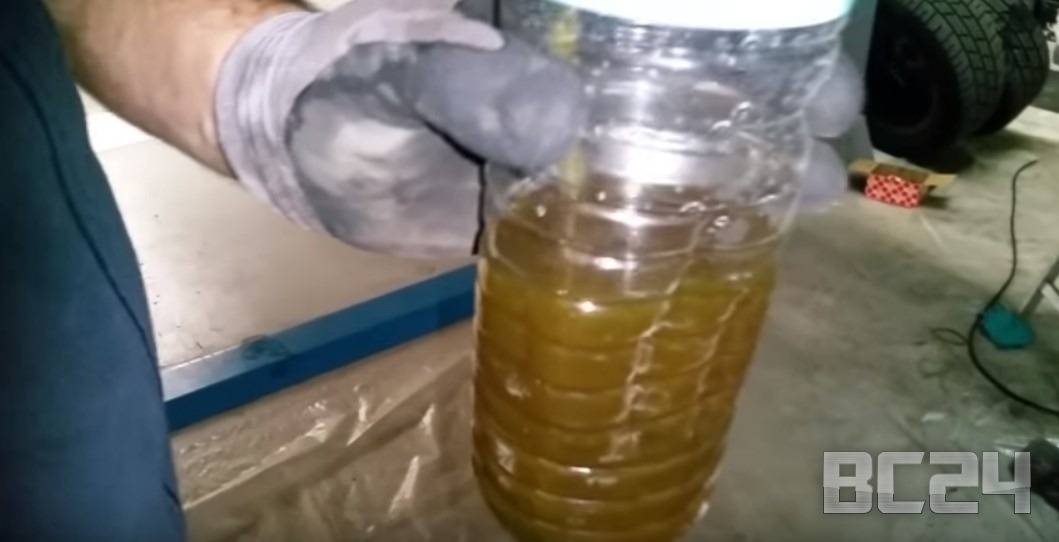 Доливаем в бачок с тормозной жидкость и качаем тормоза до те пор, пока с трубки внизу со старой жидкостью не пойдет прозрачная тормозная жидкость, то есть новая, как на фото.