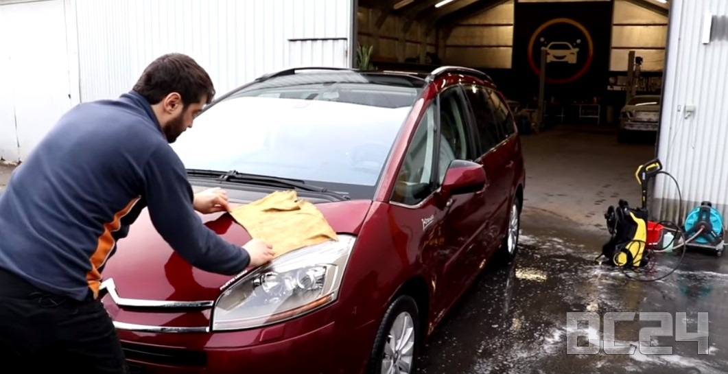 Берем синтетическую тряпку и начинаем насухо вытираться автомобиль.