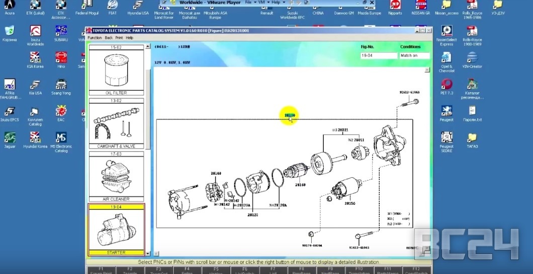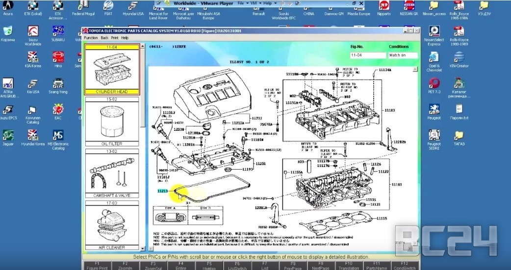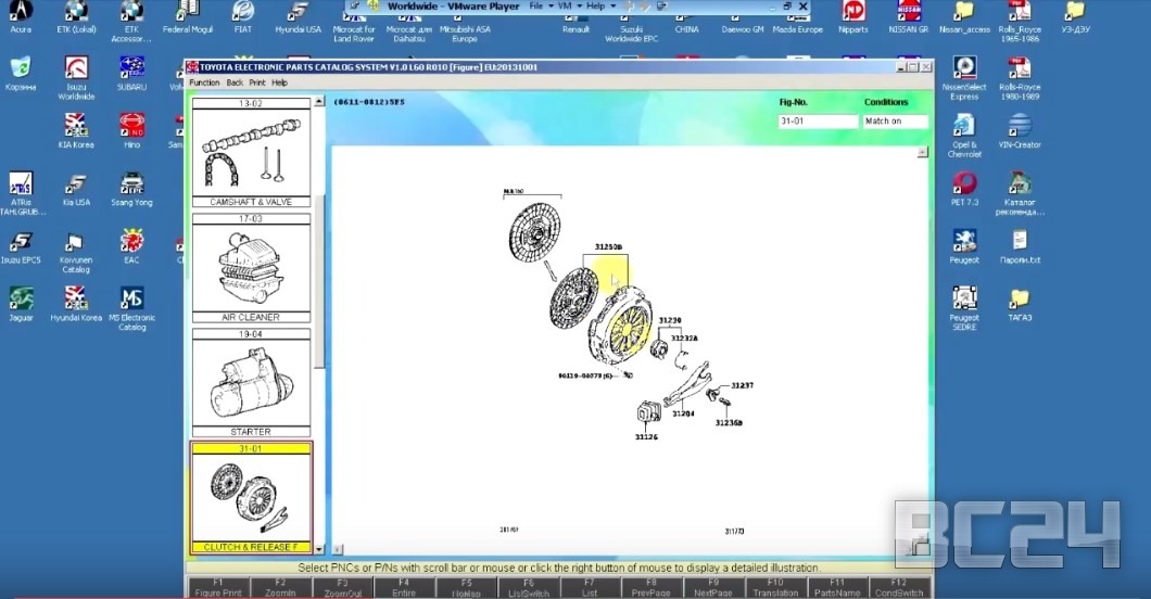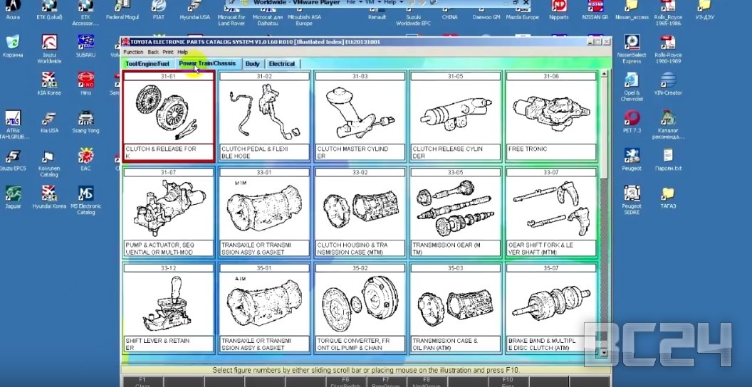 Заходим в программу с каталогами VMware Player. Запускаем программу Тойота и выбираем страну производителя.