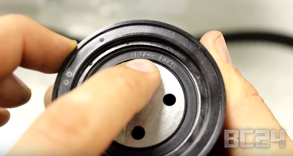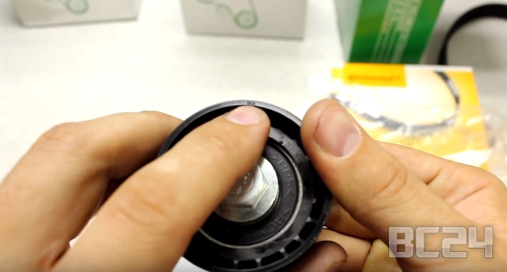На ролике на натяжной части также выдавлена маркировка INA, артикул и производство Словакия.