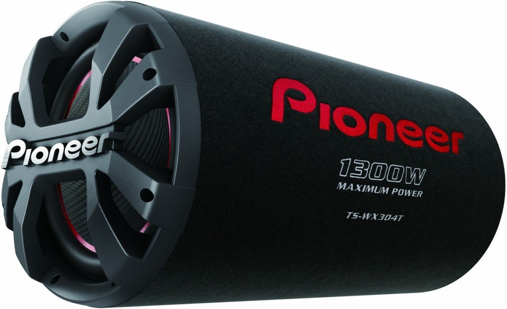 - PIONEER TS-W304R. Оптимальное соотношение качества и стоимости. Также устройства этой модели зарекомендовали себя в качестве наиболее надежных вариантов. Хороший вариант для начинающего меломана. Но следует отметить, что заявленная производителем мощность в 300 Вт — это неправда, характеристики устройства в целом завышены.